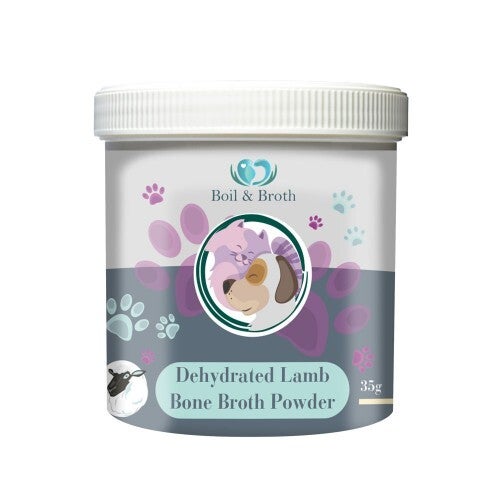 Gedehydrateerd bottenbouillon poeder van lam. Door de bottenbouillon (wat grotendeels uit water bestaat) te dehydrateren, wordt al het water verwijderd en blijft alleen zo'n 5% eiwit over. Een potje van 35 gram is daarom goed voor 750 ml bone broth. Een potje van 120 gram zelfs voor 3 liter. Hoe te gebruiken: doe een schepje poeder in een kopje, giet er 100 ml kokend water bij en roer goed. Laat afkoelen alvorens te serveren.